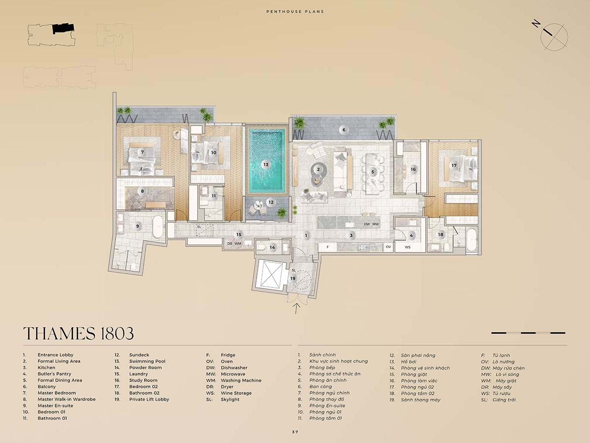 Khách bán 2 căn Penthouses GĐ1 The River Thủ Thiêm, tháp Hudson và Thames.