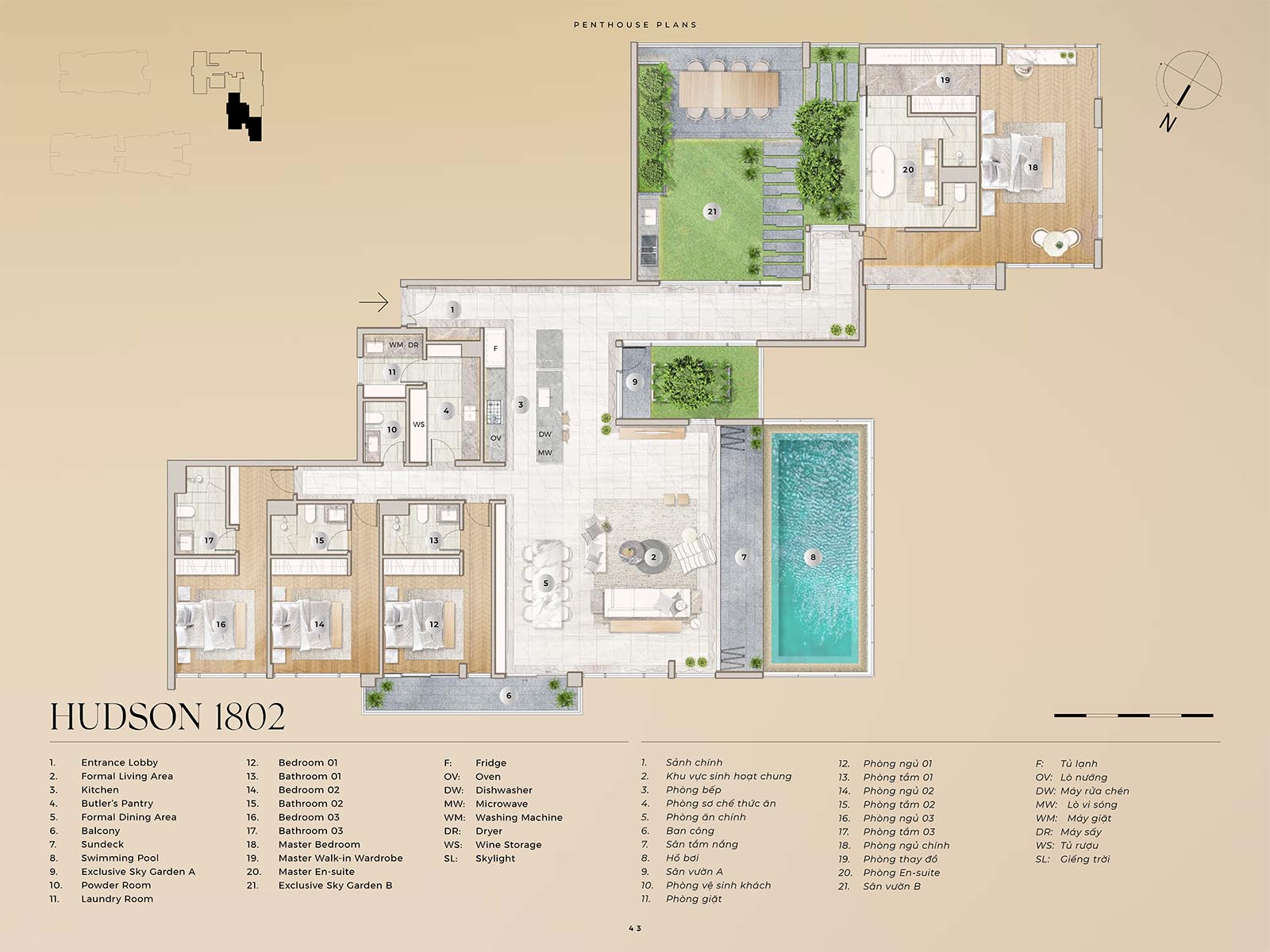 | Số phòng ngủ | 3 PN + 3 WC |