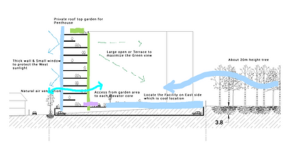 Kết hợp với đặc điểm của vi khí hậu mát mẻ của rừng, tòa nhà được thiết kế để giảm thiểu sự tiếp xúc nhiệt, tối đa hóa che nắng và làm mát tự nhiên với các cửa sổ hình vòm. Sân trung tâm là nơi cư dân sẽ được tận hưởng nhiều tiện ích đã được mở rộng để tạo bóng mát tối đa và thêm không gian xanh nhìn ra “khu rừng” trù phú.