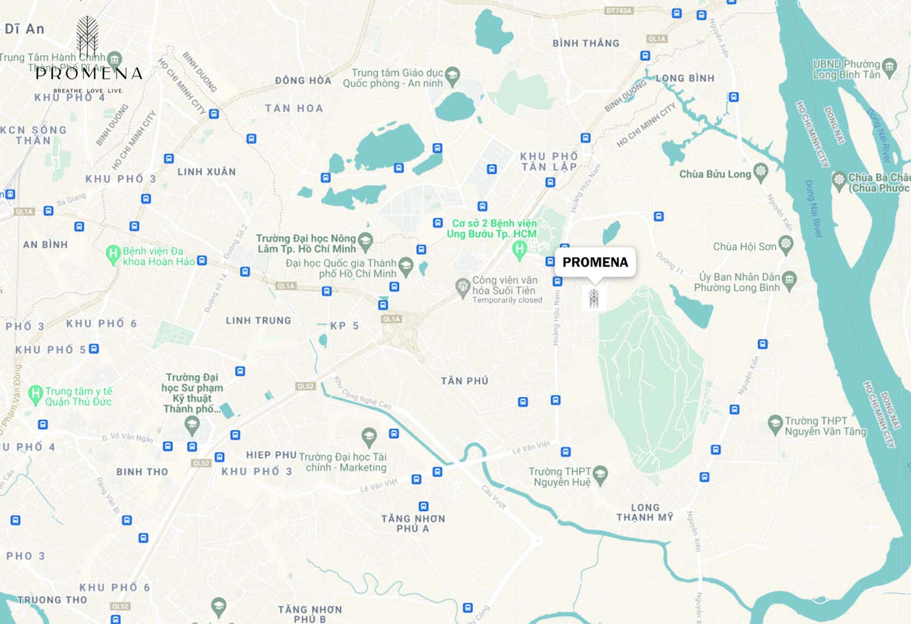 Căn hộ Promena Thủ Đức tọa lạc ngay lối vào Câu lạc bộ Golf & Country Thủ Đức, nơi giao thoa giữa thành phố và thiên nhiên, Promena giống như một nơi chuyển tiếp cân bằng, vừa yên tĩnh, tách biệt khỏi sự nhộn nhịp của thành phố nhưng vẫn giữ được sự kết nối và tích hợp các tiện ích đẳng cấp. , không thua kém bất kỳ dự án nào tại trung tâm.