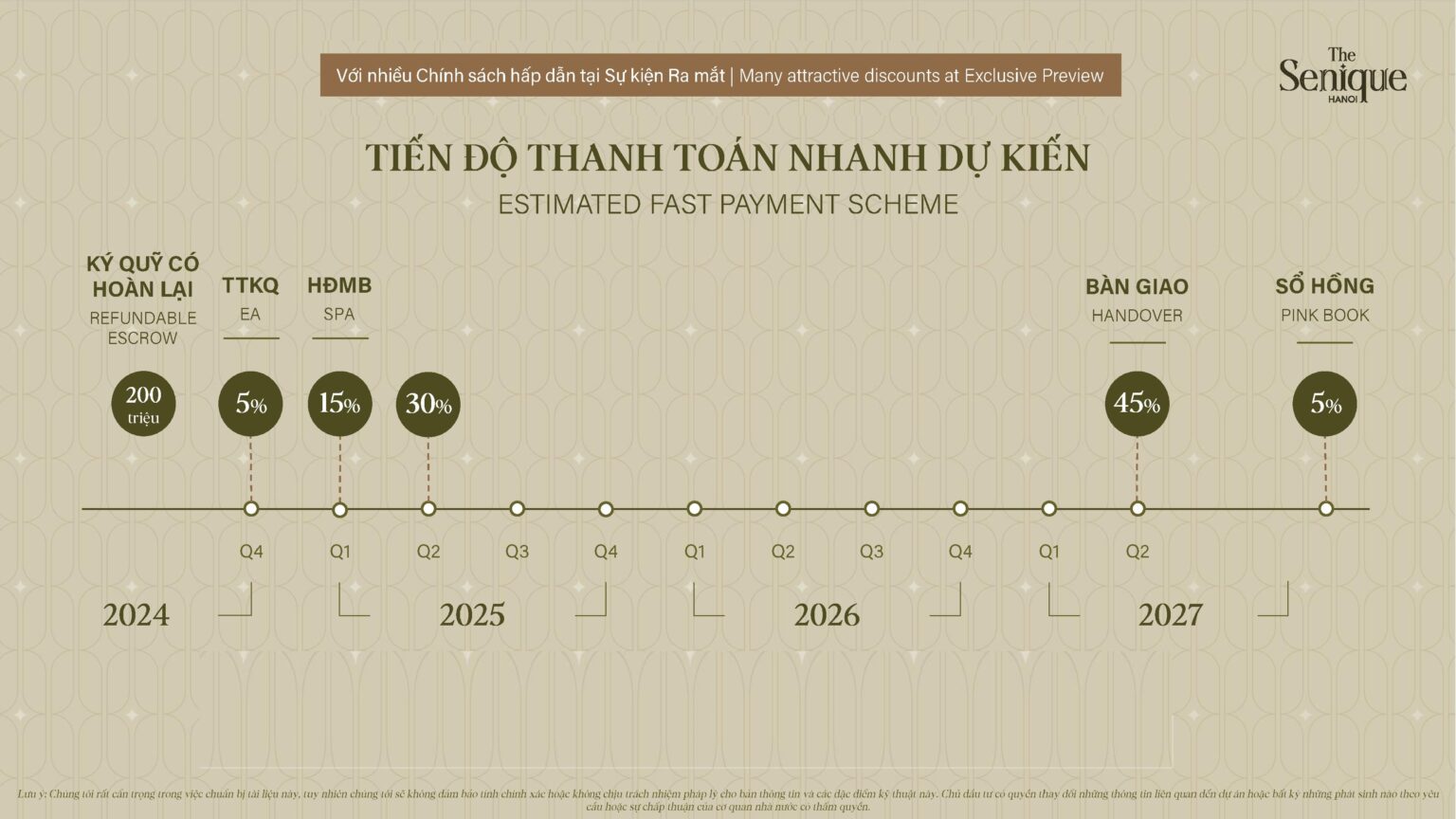 * Ghi chú: các mức chiết khấu thanh toán và giá trị quà tặng chuẩn sẽ chỉ được công bố tại sự kiện ra mắt chính thức dự án.