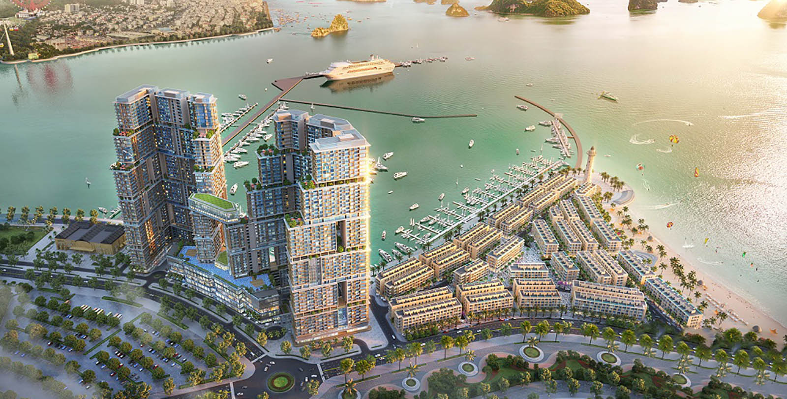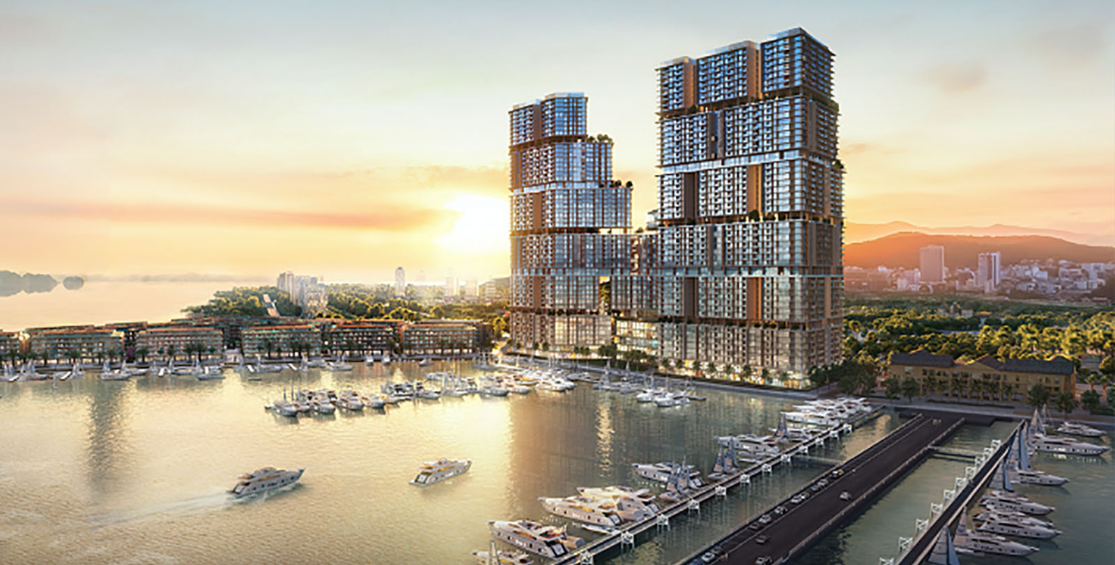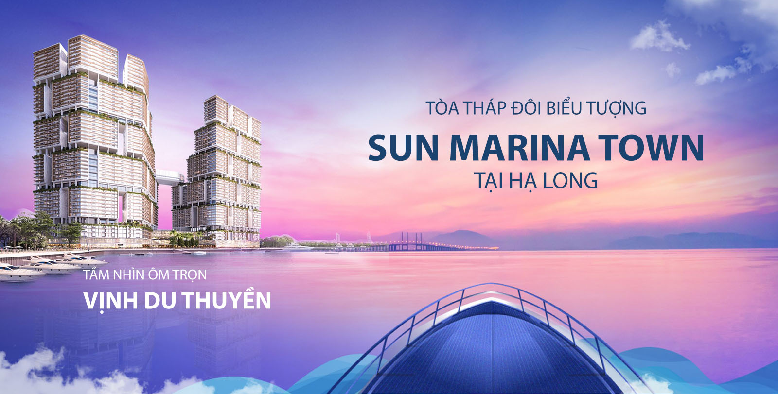 Sun Marina Town là tòa tháp đôi ven biển đắt giá, một biểu tượng sẽ vươn tầm thế giới. Nơi mỗi căn hộ được ví như một chiếc du thuyền giữa tầng không, phóng tầm mắt thu trọn cả biển trời và hàng ngàn hòn đảo lớn nhỏ của vịnh biển di sản.